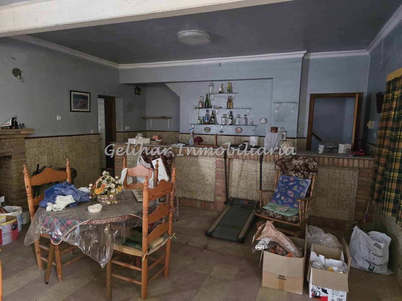 La planta baja está compuesta de 2 amplios salones/garajes, que cuentan con cocina, chimenea y un pozo con gran cantidad de agua. Entre ambos salones encontramos un patio que los conecta.